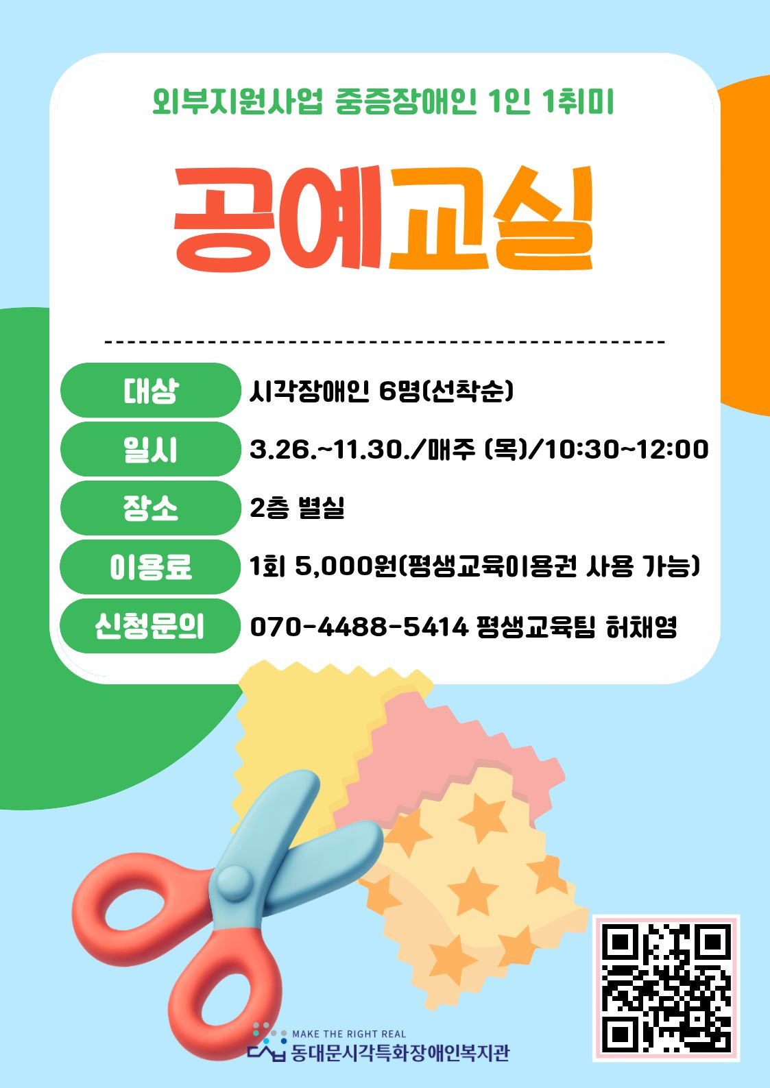동대문시각특화장애인복지관에서 공예교실 참여자를 모집합니다.