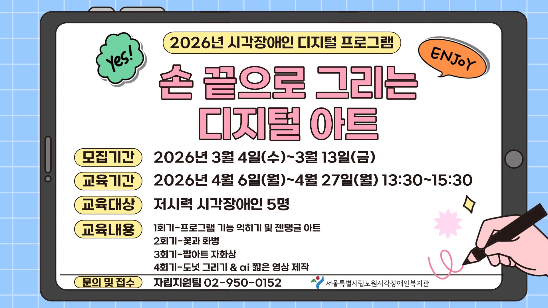 제목[모집] 2026년 시각장애인 디지털 프로그램 '손 끝으로 그리는 디지털 아트' 참여자 모집